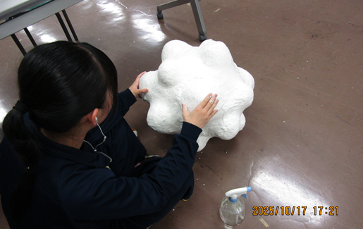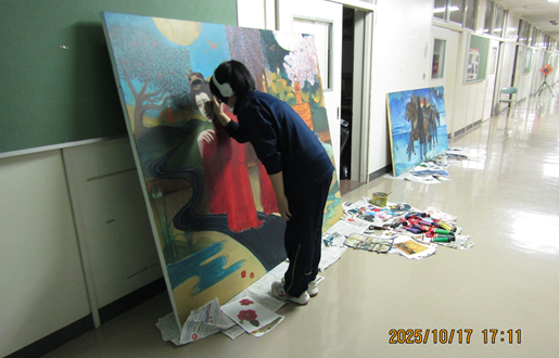 随分と大きな作品ですね。教室に入りきらず廊下で制作しています。