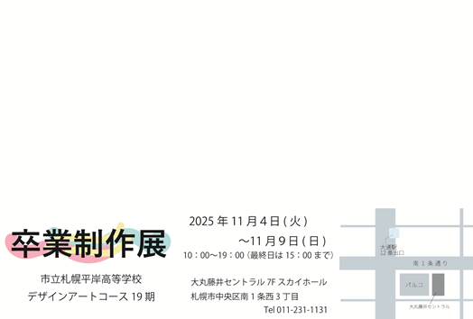 本校デザインアートコースの卒業制作展を、今年度は令和7年11月4日(火)~11月9日(日)の日程で開催いたします。場所は大丸藤井セントラル7階スカイホールです。