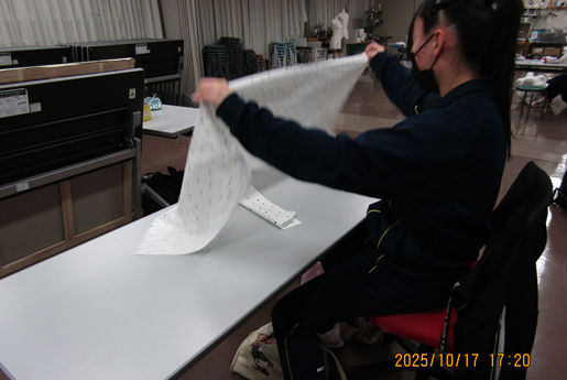 服を作っている人もいますね。型紙から起こすので時間がかかります。