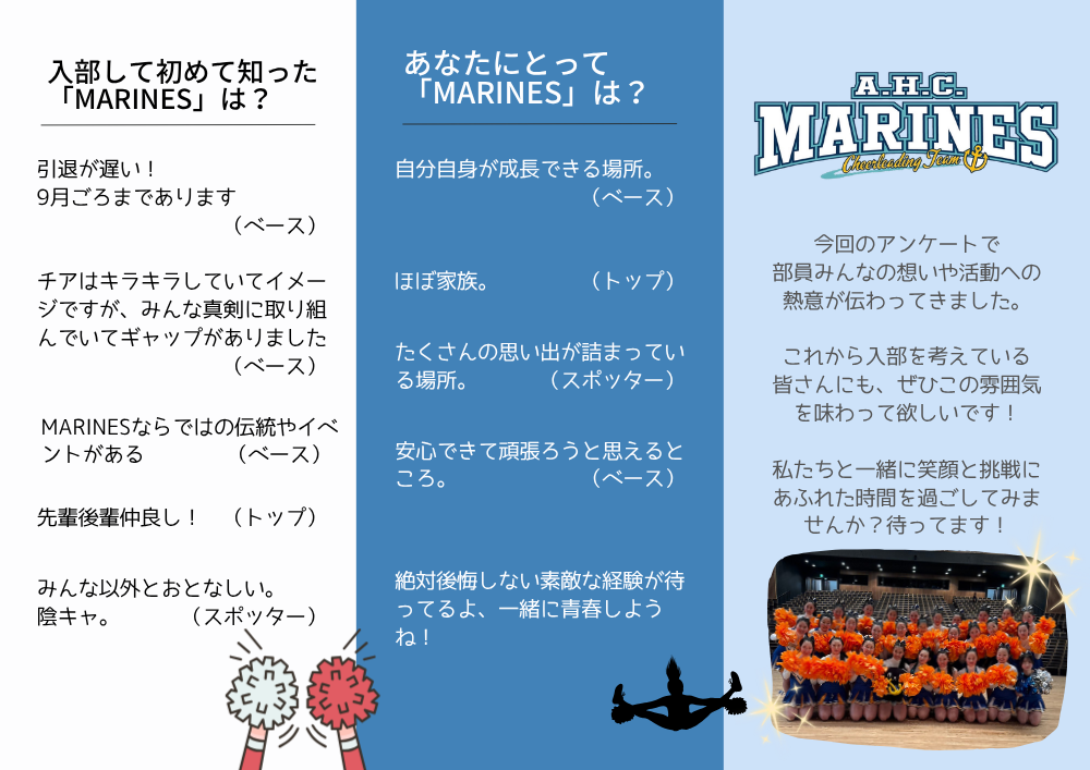 マネージャーは選手のサポートだけではなく、MARINESが良くなる方向性を指し示すため、顧問と共に主体的に動く存在です。これからも選手、そしてマネージャーの応援もよろしくお願いします。