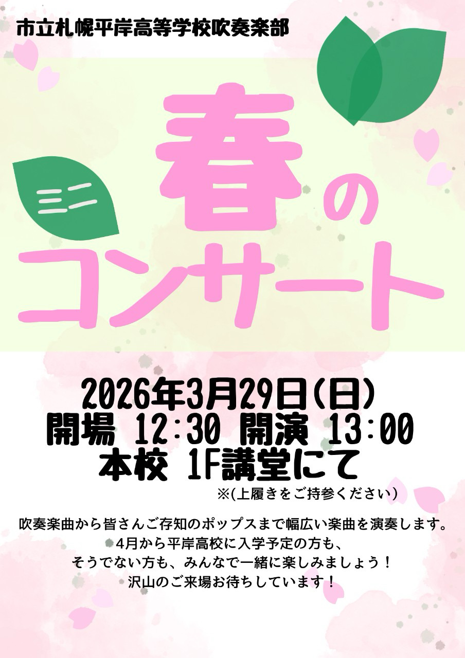 吹奏楽部 3/30(日)春のミニコンサート2025