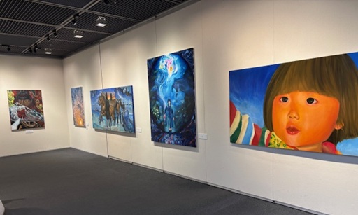 高校3年間の集大成として半年近くかけて制作した作品が並びました。今年度は大きいサイズの絵画作品が多く、展覧会としてもとても見応えのあるものになったと感じます。開催期間中、800名近い方に来場いただき生徒たちも励みになったようです。