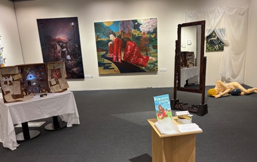 奥の部屋にも、立体作品や絵画作品、絵本などが並んでいます。個性豊かで楽しいですね。
