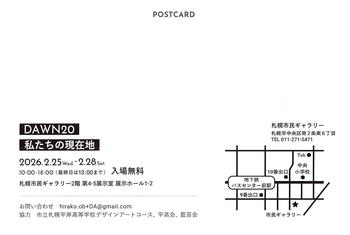 それを記念し、卒業生(同窓会)を中心に企画された「20周年記念展示 DAWN20 私たちの現在地」が、2月25日(水)より札幌市民ギャラリーにて開催されることになりました。在校生はもちろんのこと、多方面で活躍する卒業生有志の作品が展示されます。DAの足跡とも言える本展をぜひご覧ください。尚、2月28日(土)までの開催となっています。