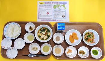 ・ごはん ・麻婆豆腐 ・ジャーマンポテト ・冷凍みかん ・牛乳