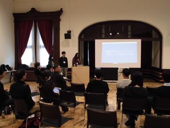 発表会当日は、『食』、『音楽』、『スポーツ』、『観光』、『美容』をテーマにした5グループが、今まで考えてきた自分たちのアイデアを多くの観客の前で報告しました。