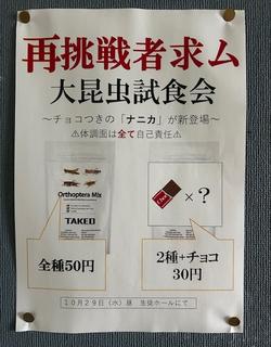 廊下に3年生の課題研究ポスターが貼ってありました。以前プレゼンで「食糧危機の前に、最近多発する自然災害での防災食の可能性として知識として知り、手に取ったことがあると違うのではないか?」とあったのがコレですね。多彩な良い視点に思います。
