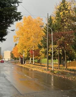 先週の雪が融け、紅葉の最終盤で隣接する石山北公園のイチョウがきれいです。銀杏や黄葉の落ち葉が降り積もっています。
