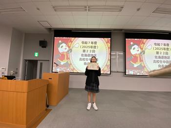 12月20日(土)に第22回北海道地区高校生中国語発表会が開催され、国際コース異文化系の2年生1名が参加しました。放課後や休日にも一生懸命に練習に取り組み、その結果、見事入門の部で優良賞を受賞することができました。