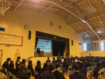 科目『課題研究』では、「ちょっとだけプロジェクト」と題し、"自分たちを支えてくれる人々と力を合わせ、ちょっとだけ良い未来を共に創り出すために、ビジネスの視点を持ってチャレンジする"ということを目標に活動してきました。その成果を学校全体で共有するための発表会を、全校生徒、保護者、企業や団体の方が参加のもと、開催しました。