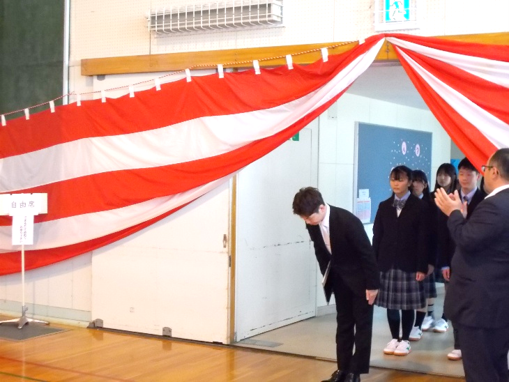 梅澤校長先生より新入生への入学許可があり、晴れて173名が啓北生の一歩を踏み出しました。新入生の代表からは「私たちは札幌啓北商業高校の生徒としての誇りを持ち、本校の校則を守り、勤勉に励み、友情をはぐくみ、未来を自ら切りひらく力をつけるよう努めていきます。」との力強い宣誓がありました。