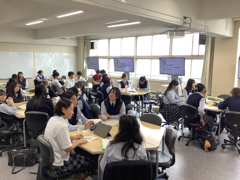 2年次のグローバルコースの生徒全員が履修する学校設定科目「国際協力」の授業にて、日韓比較研究の授業が始まりました。日韓比較研究とは、生徒が地域社会の課題等を見学旅行の行き先である大韓民国の社会問題と比較して探究する授業となります。日韓比較研究の最初の授業に、本校の「ハングルとその文化1・2」の講師をされている八幡早苗先生に来校いただき、「見学旅行の行き先のソウルの基本状況」「韓国の社会問題」「日本と韓国の社会の比較から見えるもの」等をワークショップ形式で講義をしていただきました。この授業で学んだことを、今後の日韓比較研究や見学旅行で訪れる韓国の高校生へのインタビューに活かします。