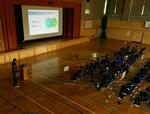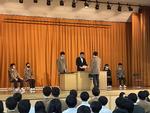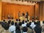 体育館で全校生徒が参加のもと、「後期認証式」が行われました。最初に、この度の選挙で選出された「生徒会役員」が認証され、校長先生から1人ずつ認証状が手渡されました。役員を代表して生徒会長が決意を述べた後、新生徒会役員はすぐに初仕事として司会を交代。その後、「後期学級代表」が呼名され、全学級を代表した1名がステージ上で認証状を受け取りました。「自分たちの学校への意識」を全校生徒でともに確認する、有意義な式になりました。