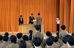 終業式は1年代表生徒が、みなみの杜で仲間と過ごしたり、実習で経験したりする中で変わりたいと思って意識していること、その結果少しずつ行動が変わってきていることを話してくれました。