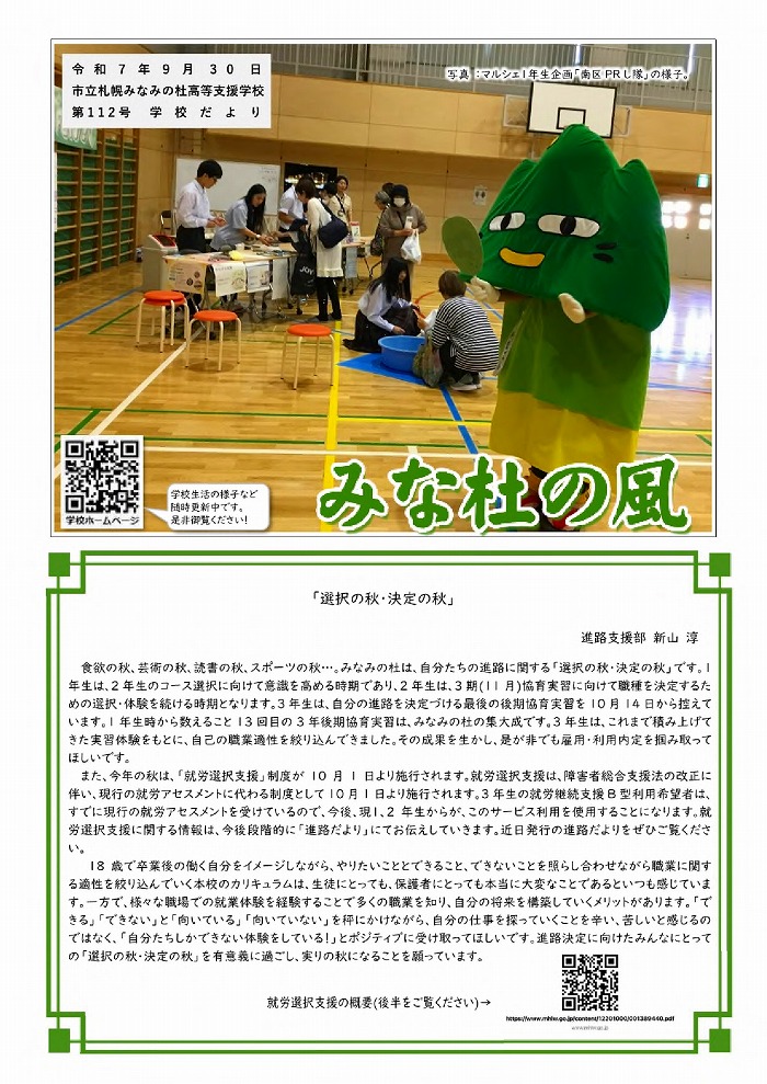 学校だより 「みな杜の風」