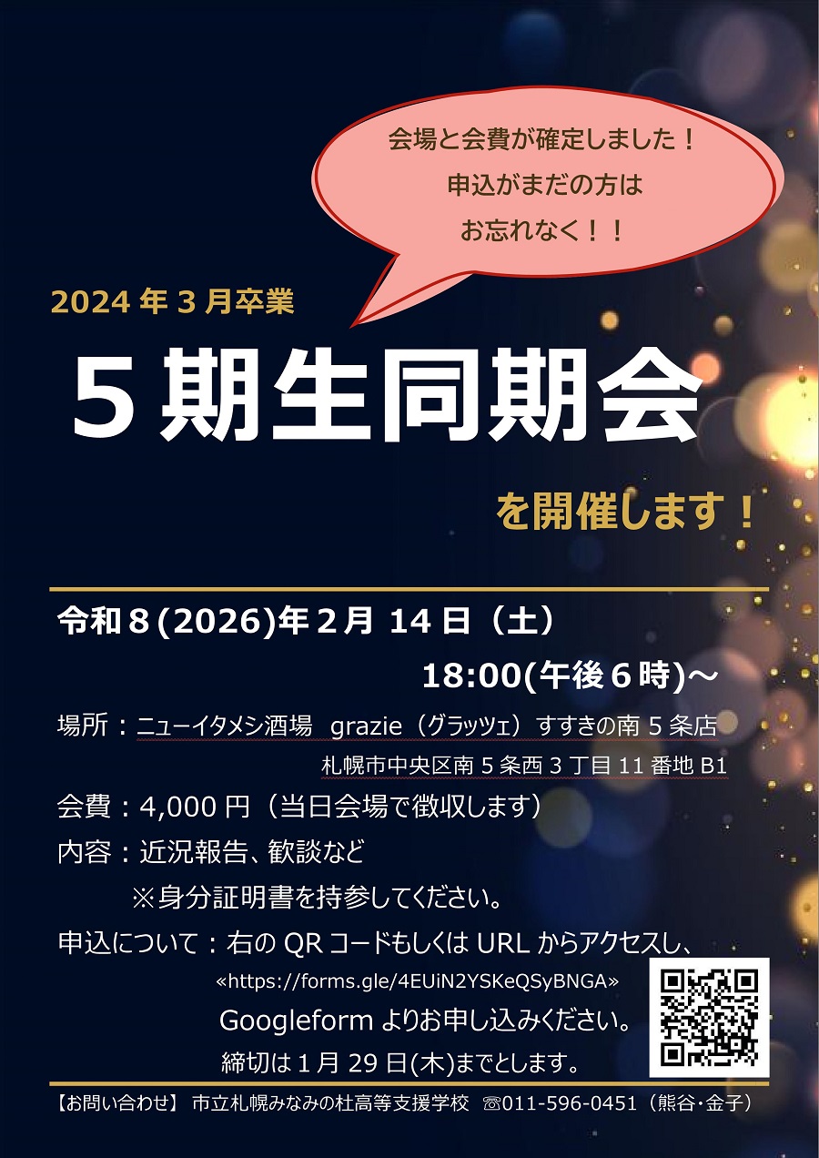 5期生同期会のお知らせ