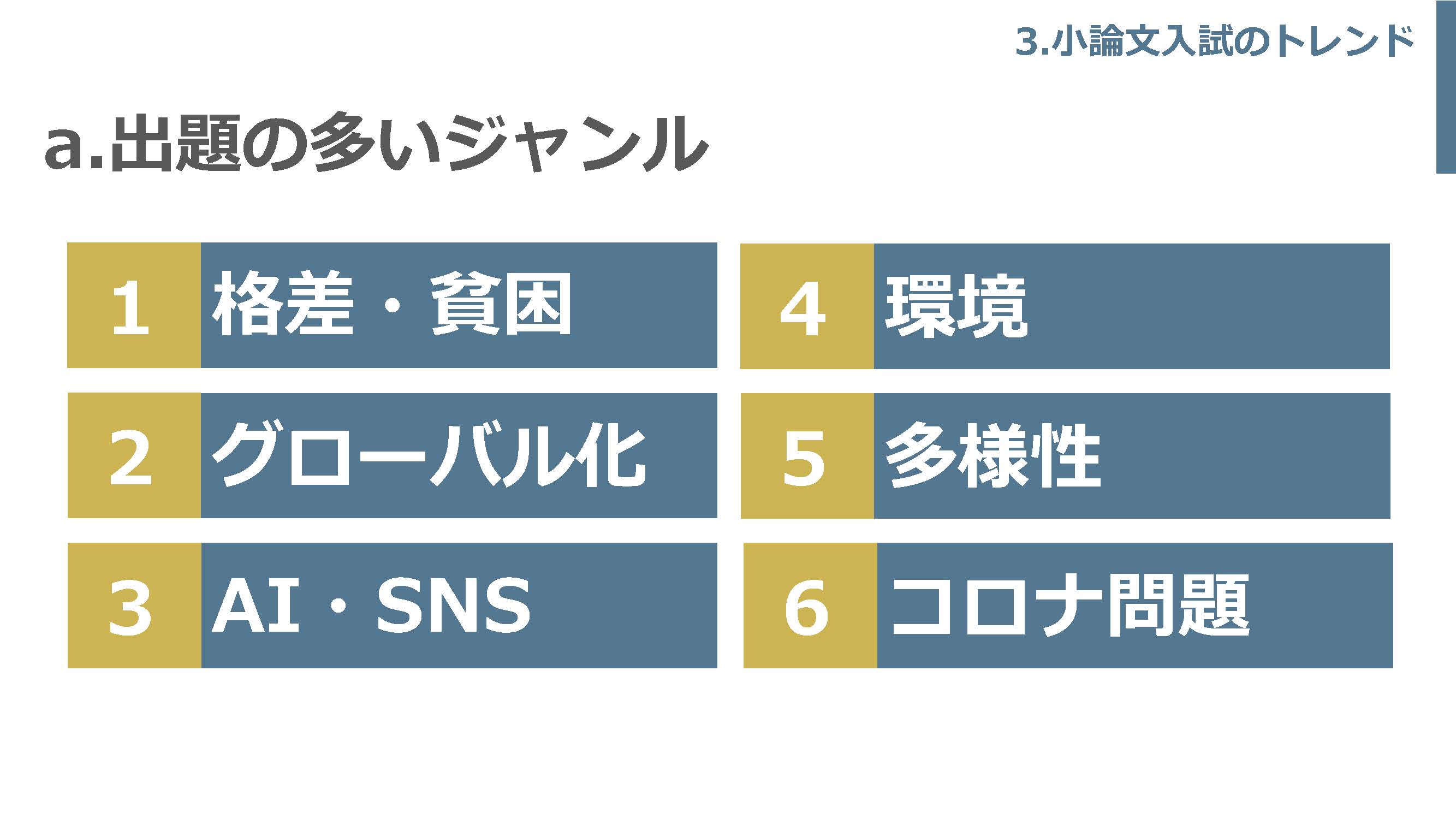 ・「多様性」というキーワードを深く理解することで、入試や将来の課題に役立つと感じた。