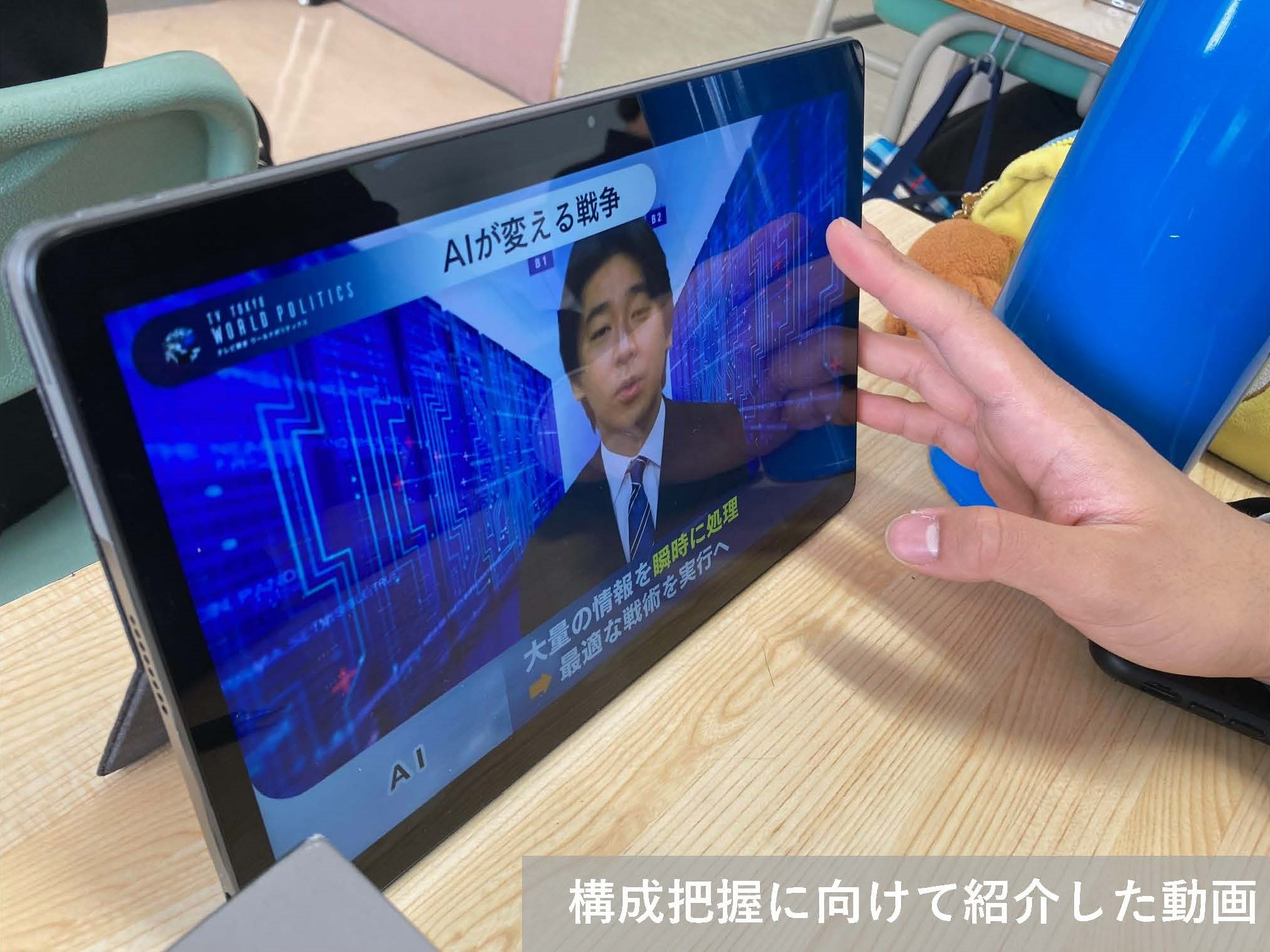 最後に、出版社が提示している模範解答を生徒たちに見せたところ、「自分たちの動画の方が内容が充実していた」との感想が上がりました。もちろん、入試では限られた時間で、なおかつ自分の頭の中の情報だけで取り組むことになるため、時間を掛けて作成した今回の動画の方がハイクオリティになるのは言うまでもないですが、それでも今回の学習活動が入試にも十分通用することを実感できたようで、多くの学びがあったと述べていました。