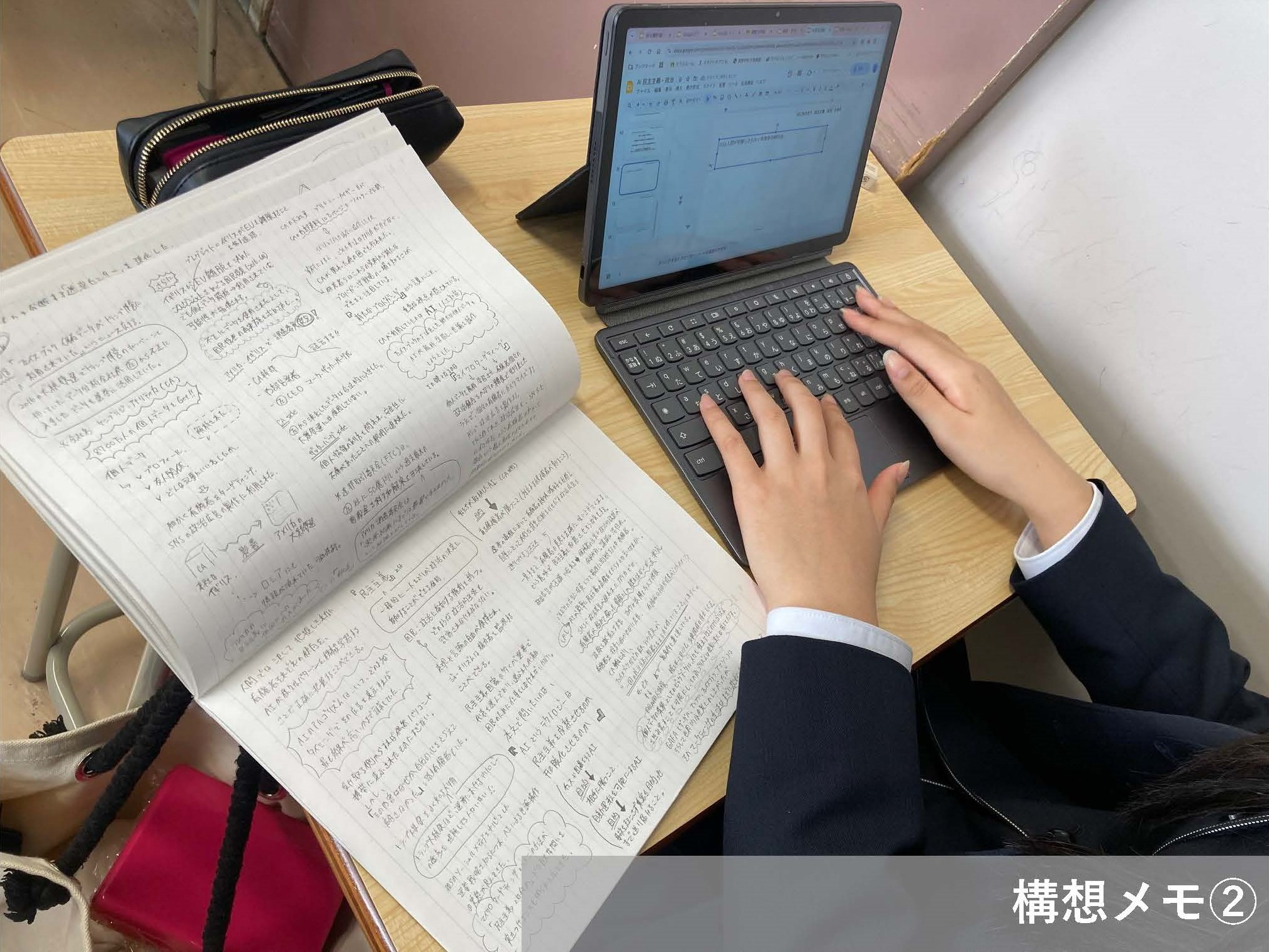 構想メモを取ることから始めたり、文章化に力を入れて原稿作りから始めたり、美術が好きな生徒はスライドデザインから始めたり、話すのが得意な生徒は発表の仕方にこだわったりと、アウトプットの種類を複数用意したことによって自分の強みを活かしながら学習を進めることができていました。
