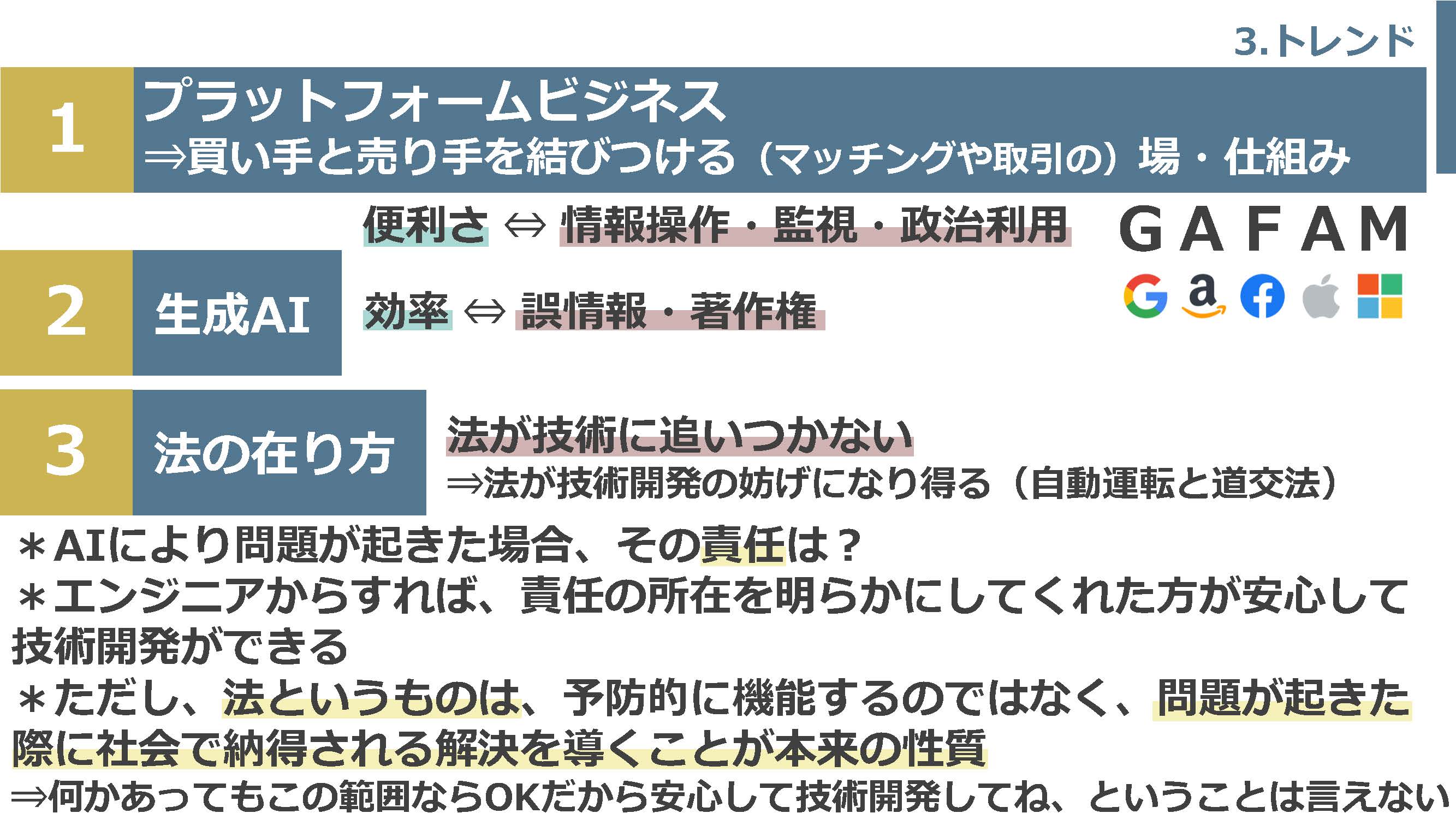 ・改めてスライドを見てみると少し内容がずれてしまっているように感じた。特に今後の展望について述べたところでは行き過ぎた意見を述べてしまっていたので反省したい。