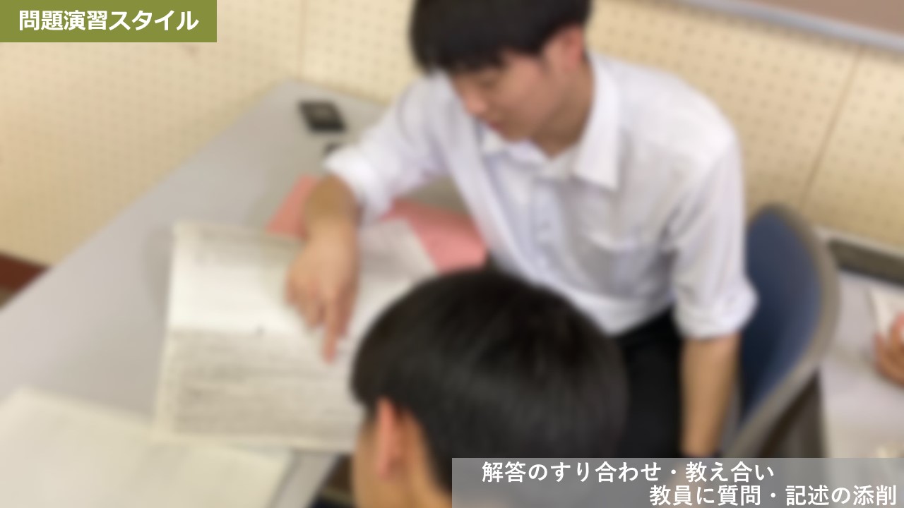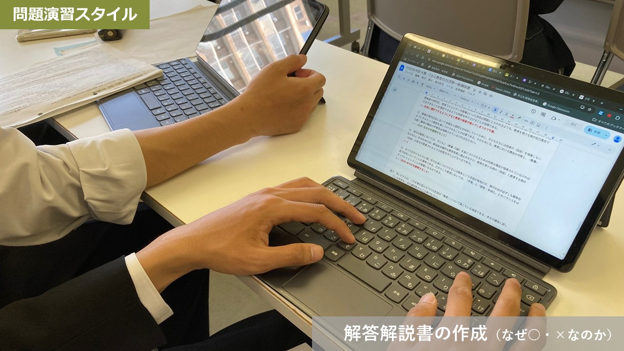 a.問題演習スタイル:複数の問題集を解き、解説書を作成した後、小論文形式で共通課題に取り組む。