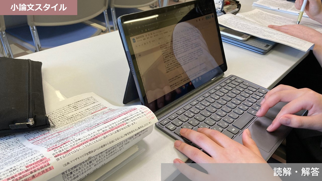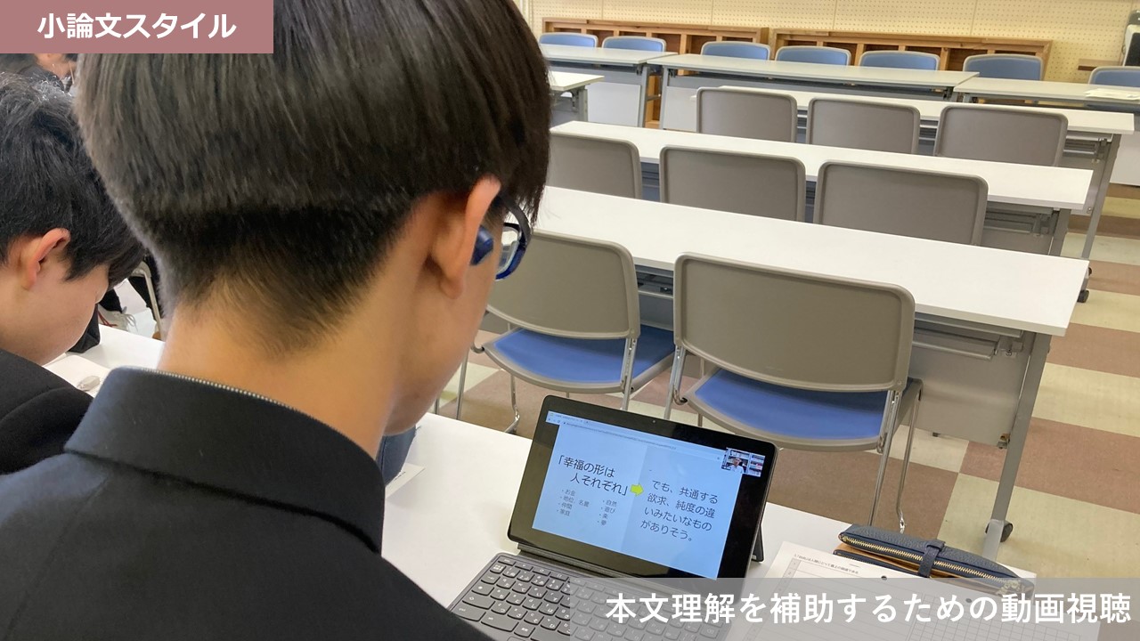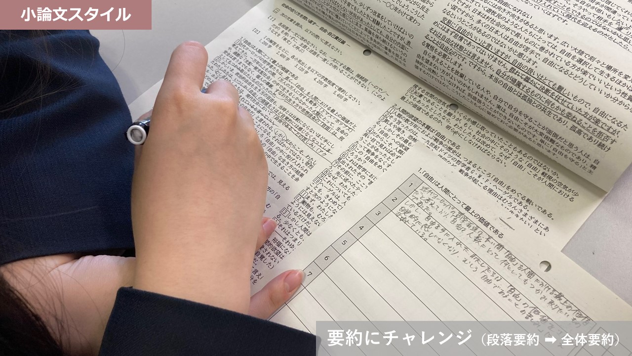 生徒は「問題演習スタイル」「小論文スタイル」「プレゼンスタイル」から希望するスタイルを単元毎に選択して学習を進め、最終的には共通課題である小論文に取り組みます。