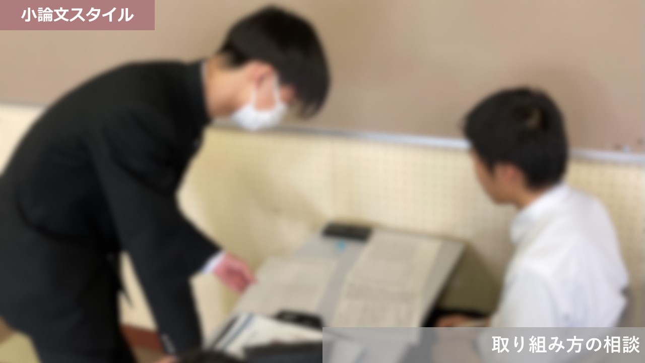 b.小論文スタイル:複数の小論文に取り組み、添削を受けた後、小論文形式で共通課題に取り組む。