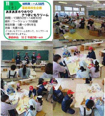本日は、南区真駒内にあるCoミドリを会場に、株式会社横浜植木様のご協力により、お菓子づくりの楽しさを知ってほしいという想いのもと、本校2年生のMSPチームが5歳~10歳のこどもを対象としたさつまいもクリームづくりを実施したので、紹介します。