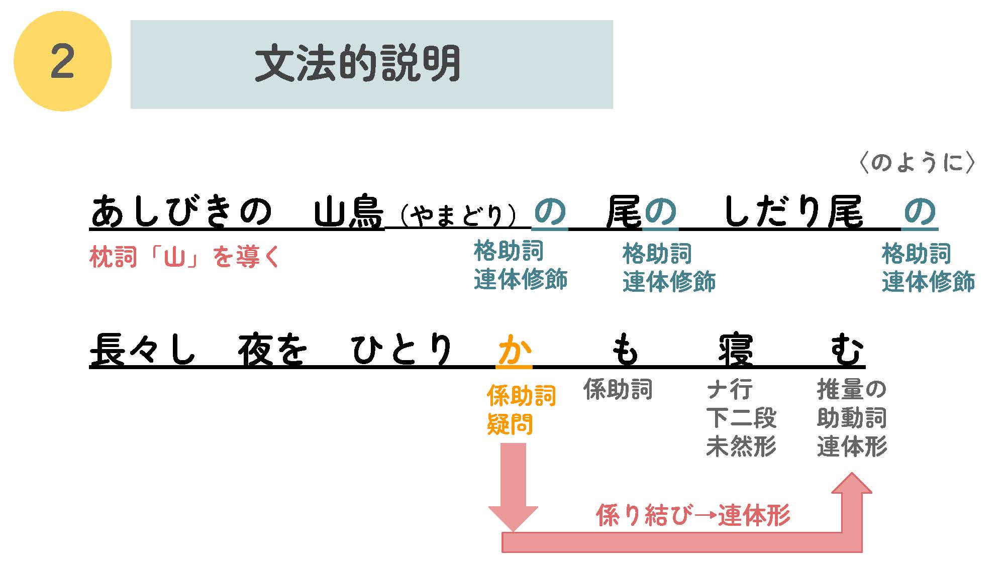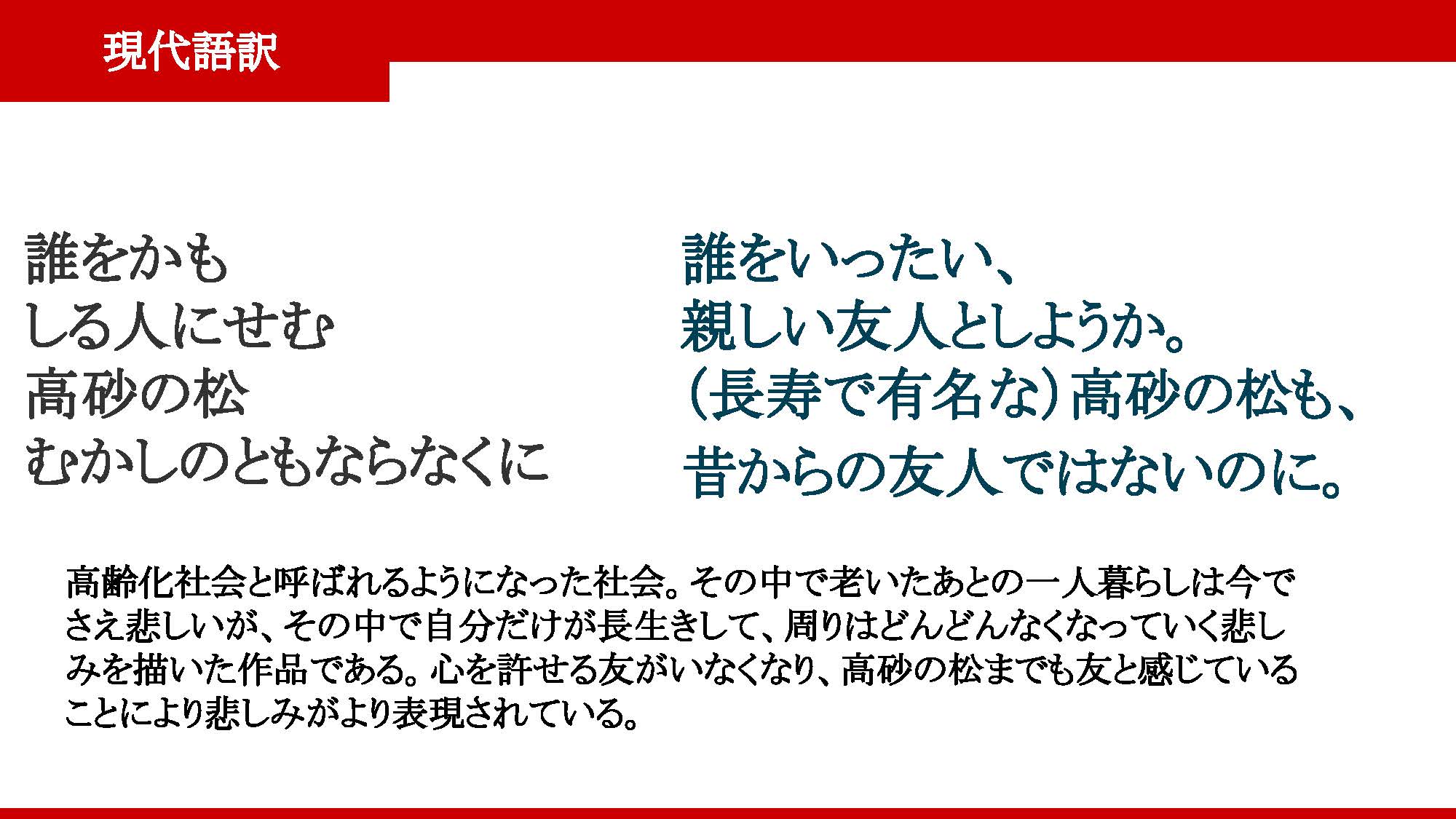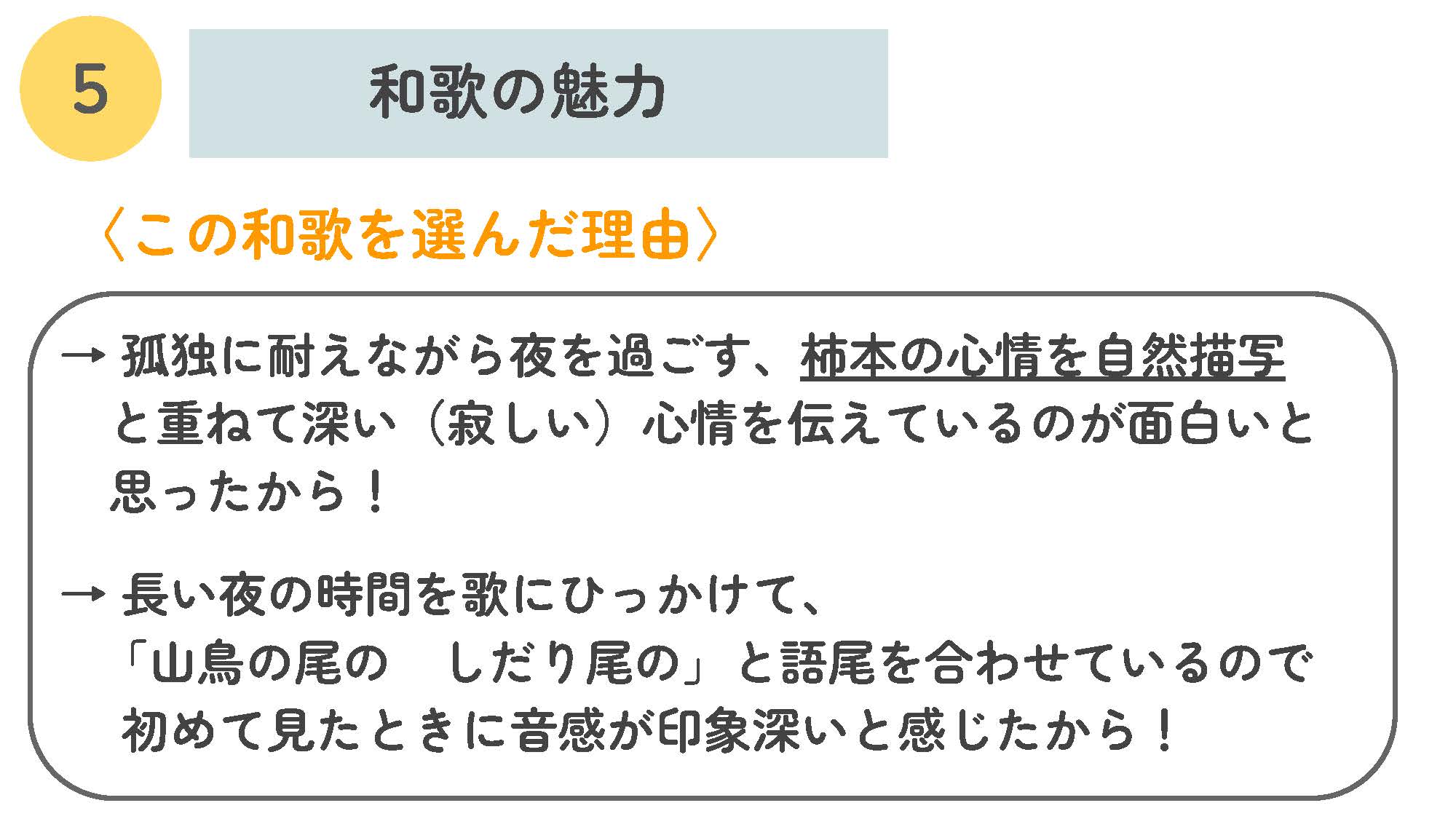 作成したスライドをもとに、お気に入りの一首を紹介するワークに取り組みました。