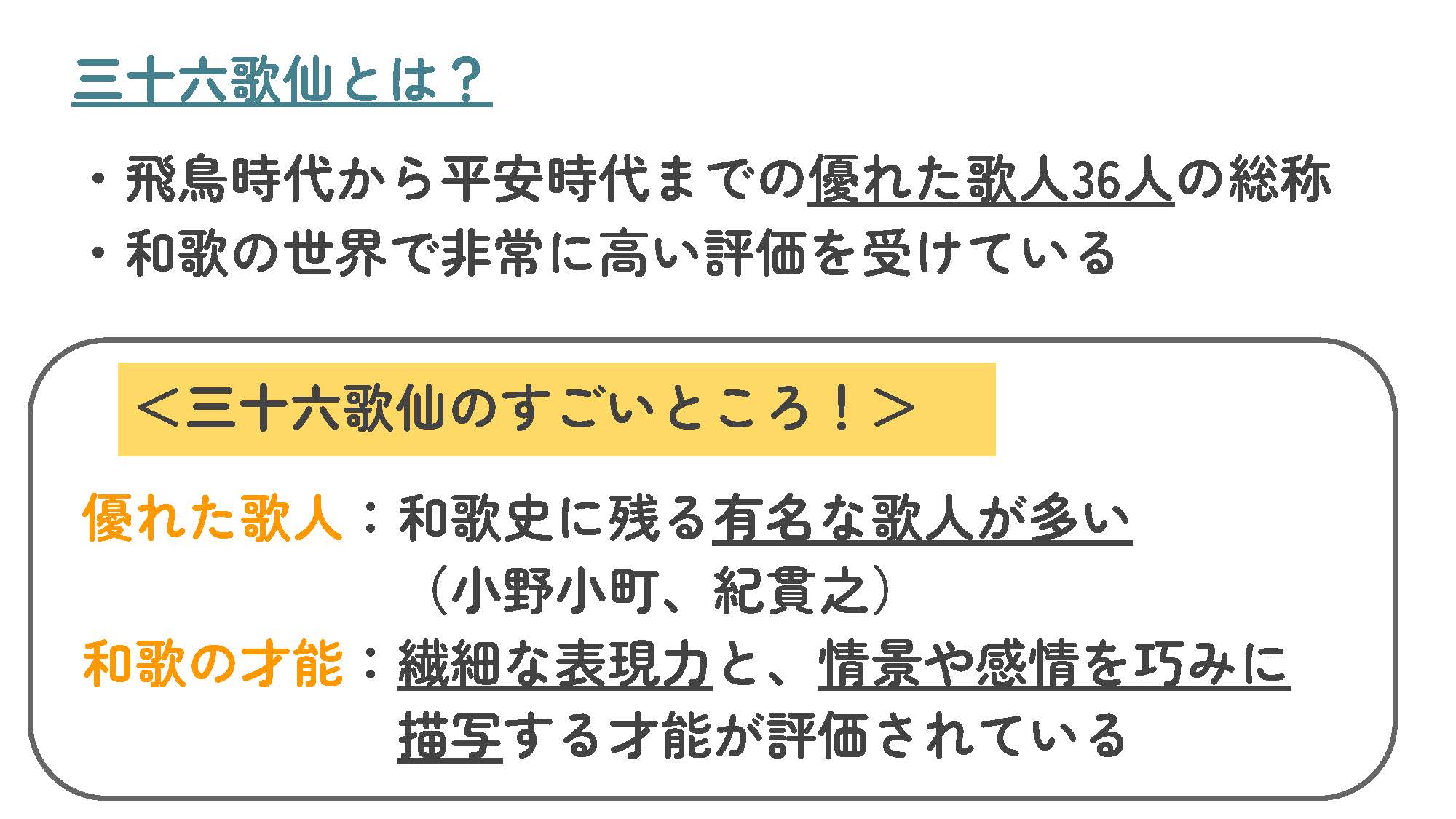 STEP1.『小倉百人一首』の中から「お気に入りの一首」を選び、その魅力を紹介するスライドを作成する。