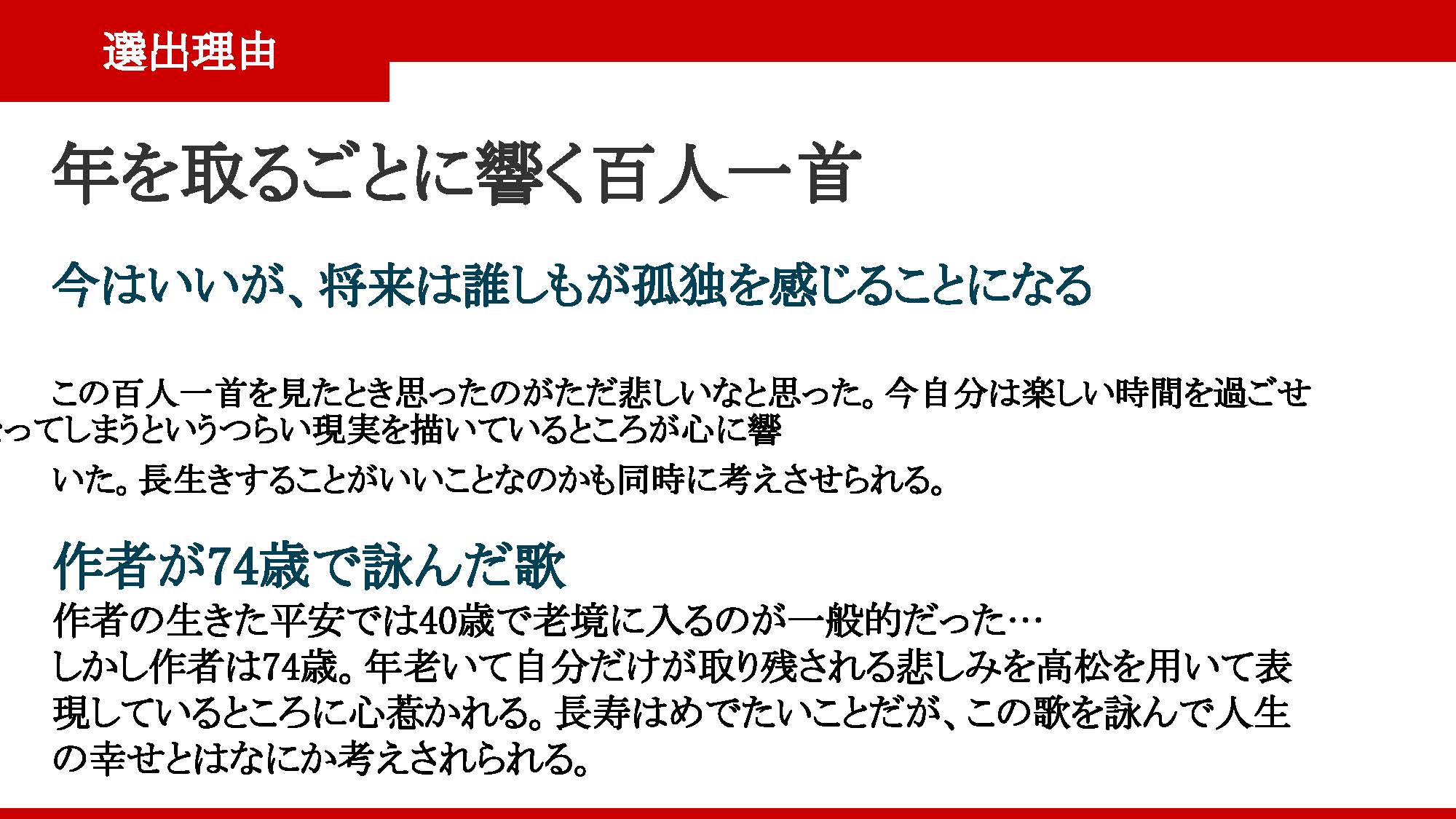 ⑳百人一首を味わうpart.1「お気に入りの一首を紹介する」(国語科51期3年次)