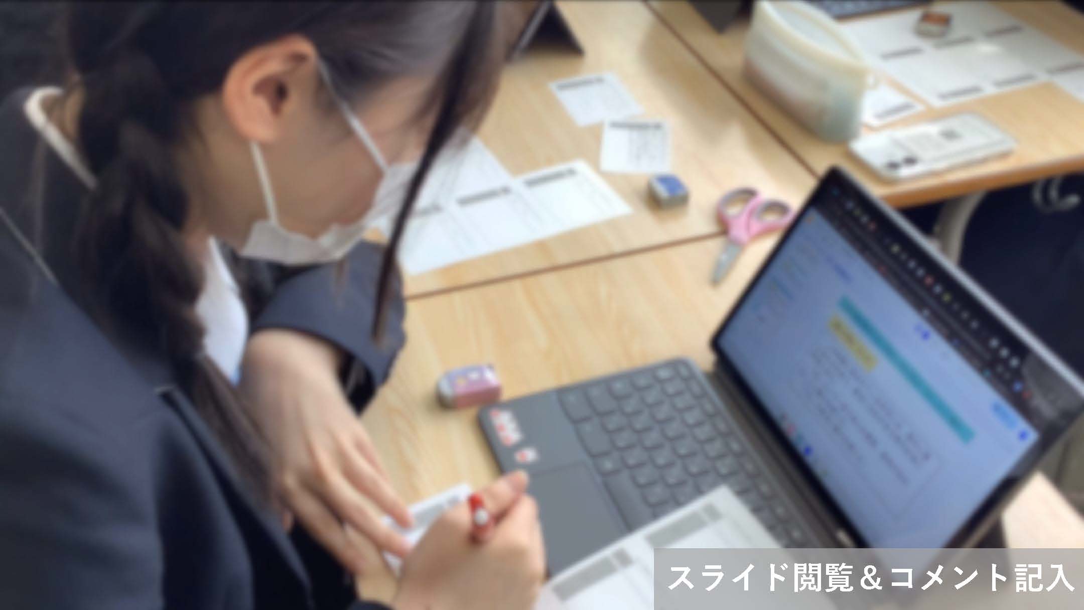 気になる人のスライドを自由に閲覧していいことにしたので、 交流時には「見てくれたんだ、ありがとう!」という言葉が飛び交っており、国語のスキル向上だけではなく、自分の良さや相手の良さに気付くような、相互承認の場が実現していたことが印象的でした。