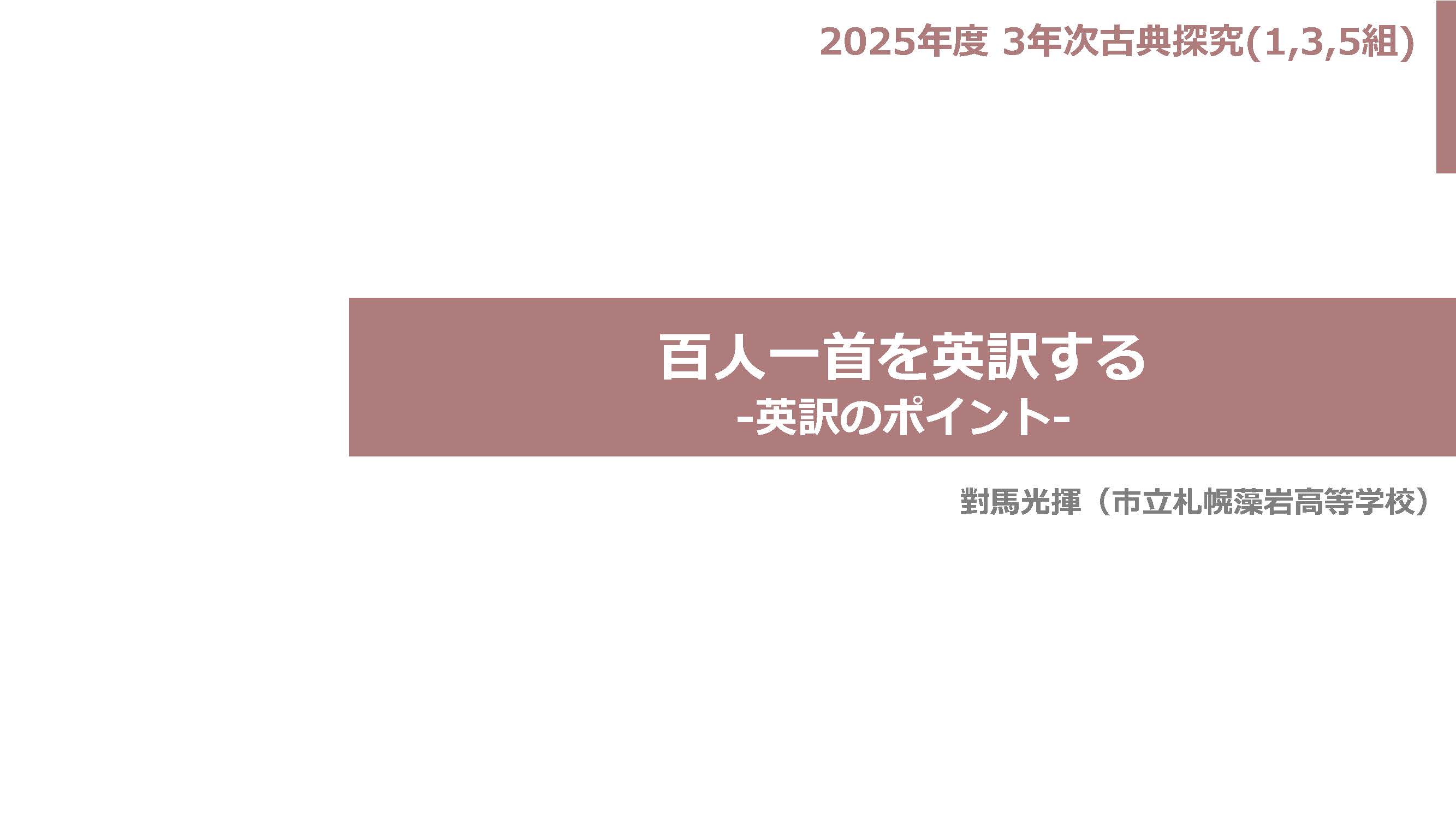 2025年度の3年生を対象に、百人一首を題材にした古典探究の授業を実施しました。