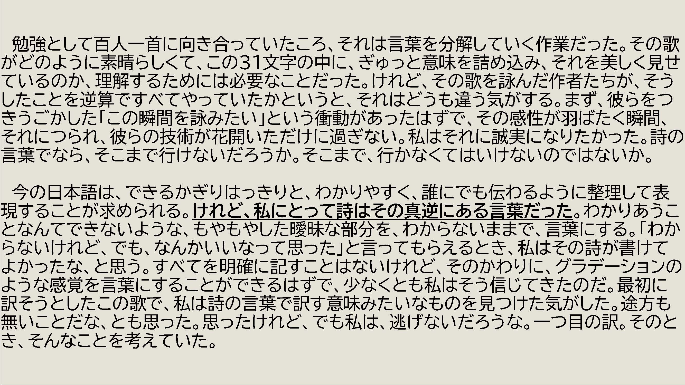 STEP1.『小倉百人一首』の中から「お気に入りの一首」を選び、その魅力を紹介するスライドを作成する。