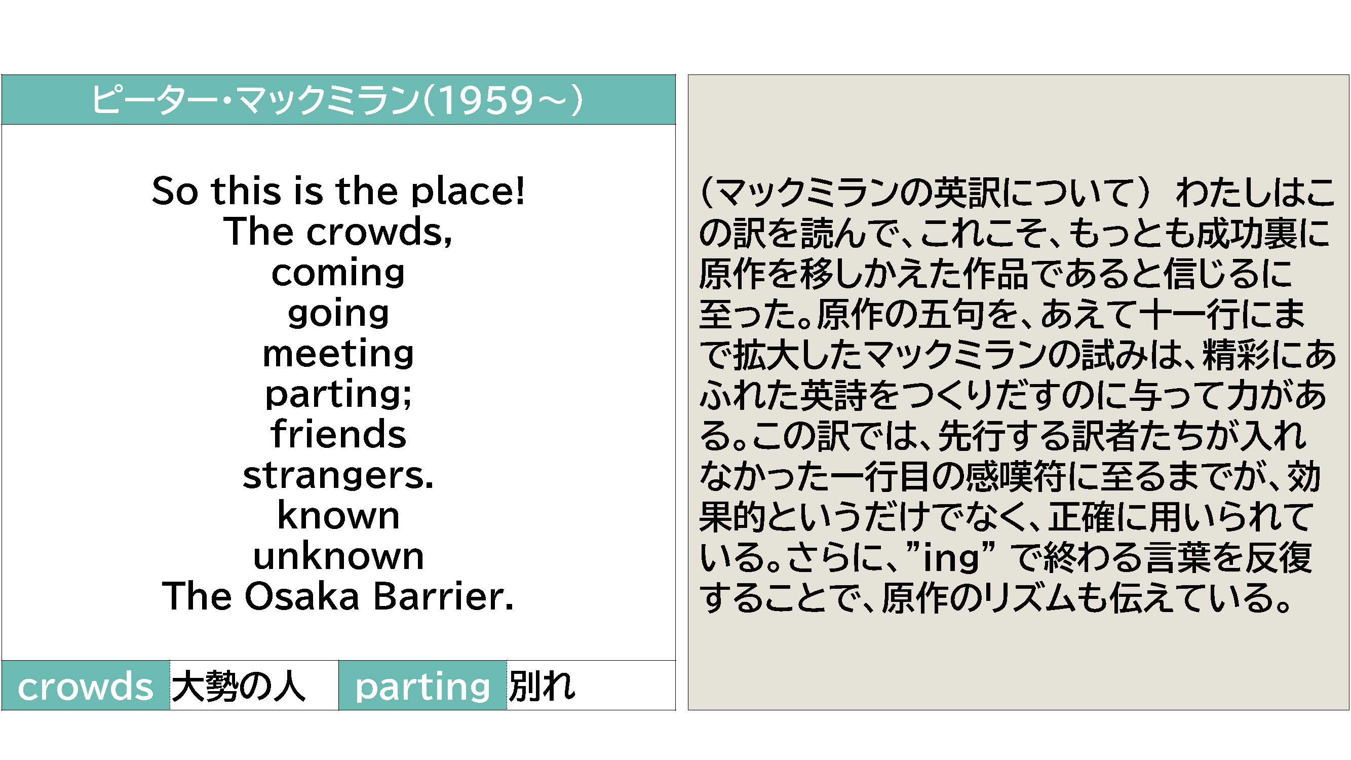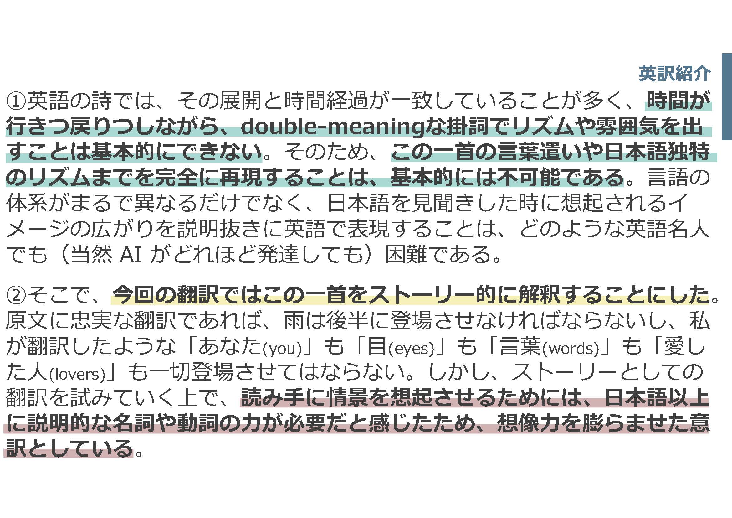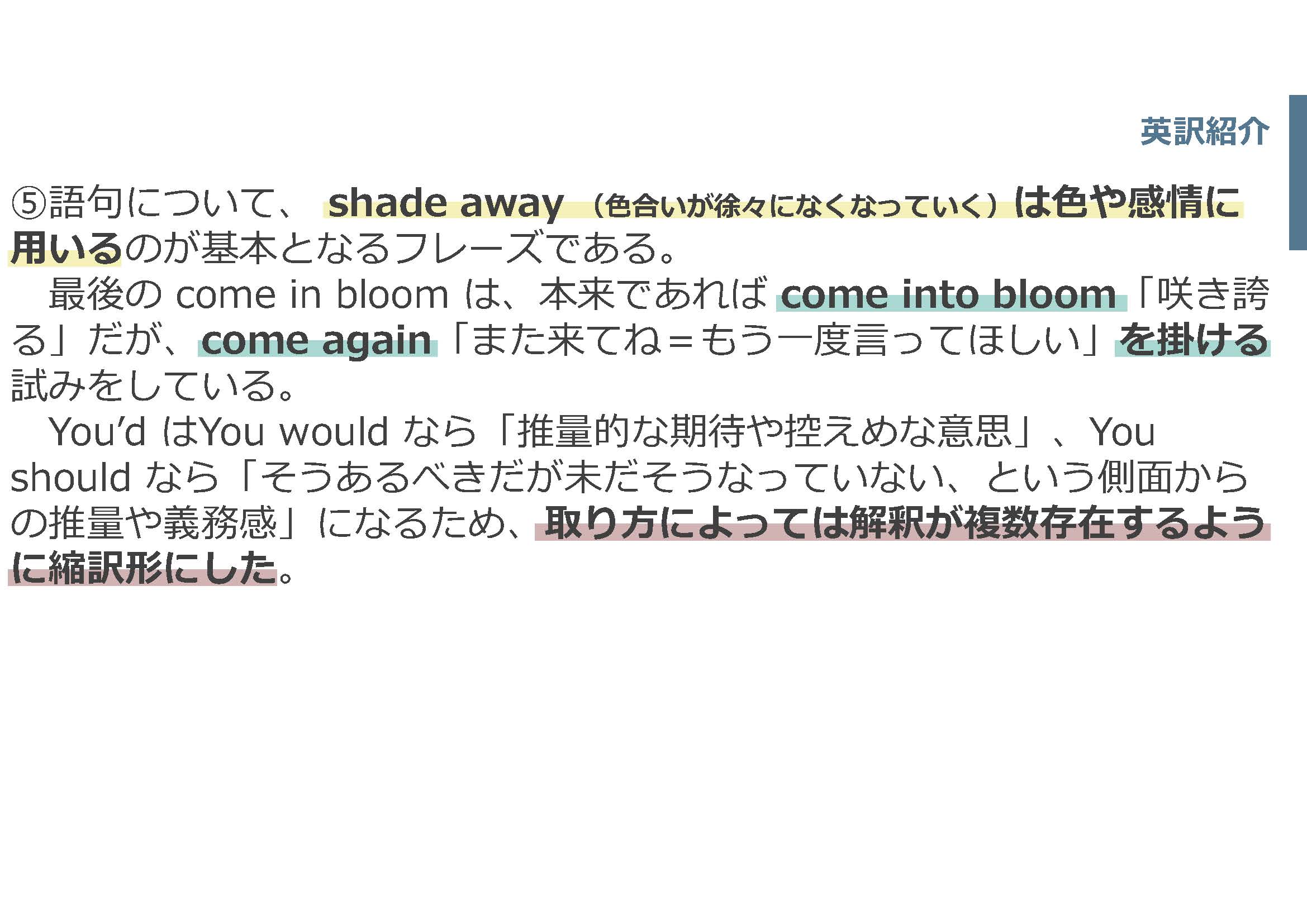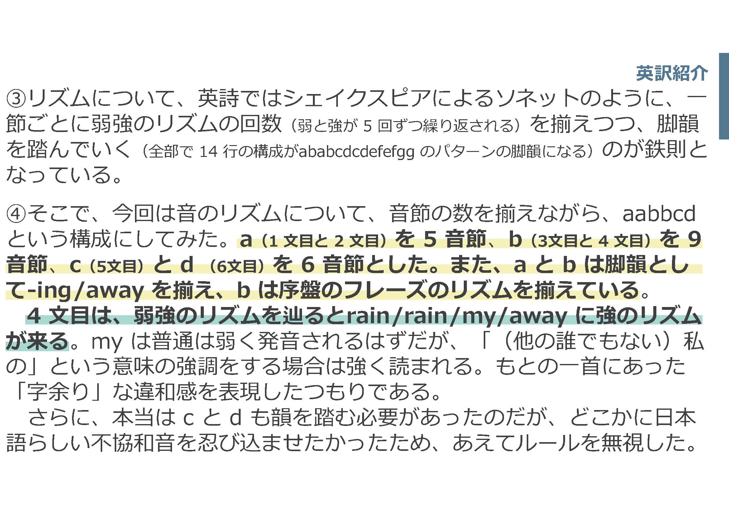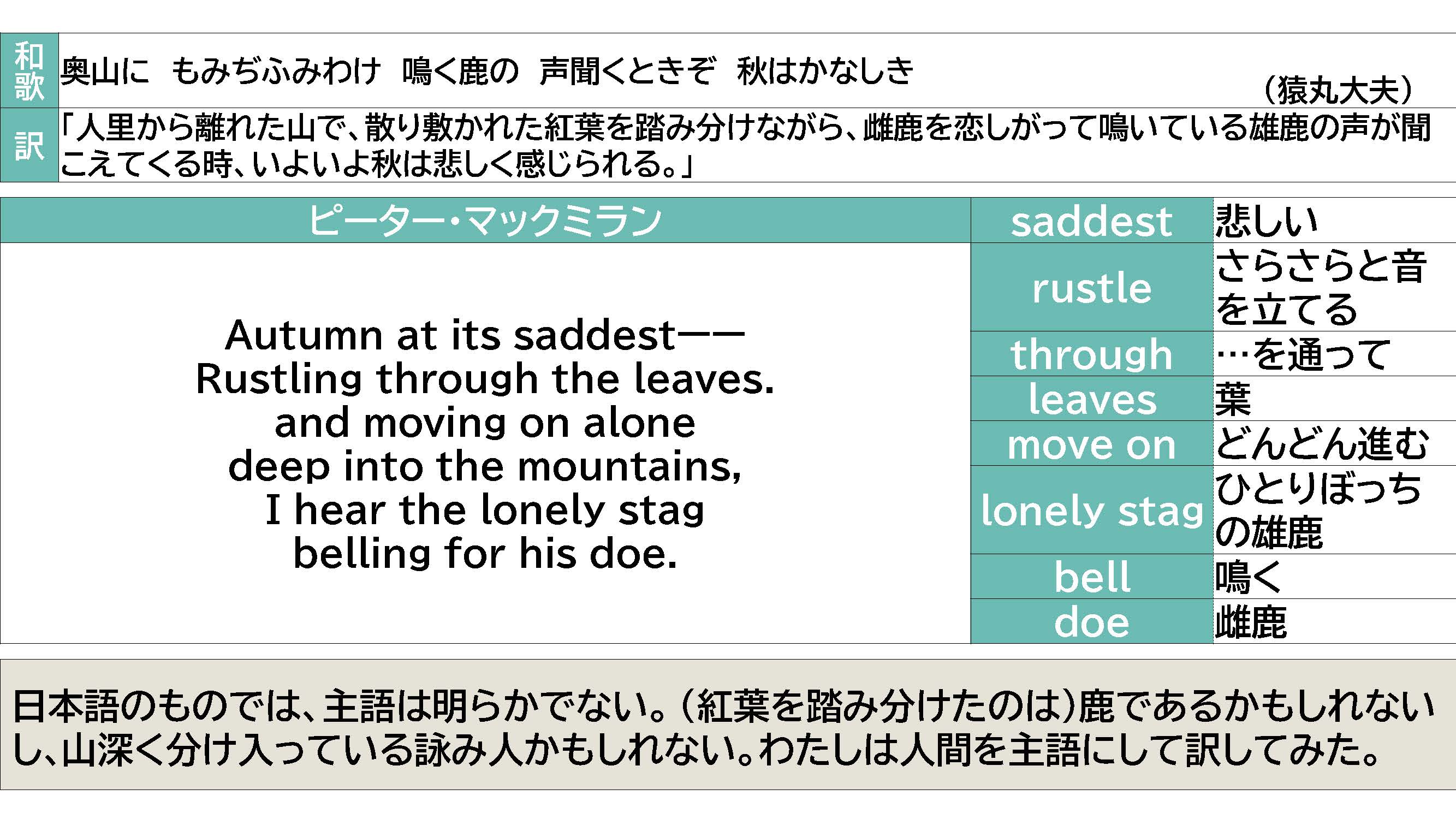 また、英語科の野田先生にご協力いただき、野田先生が作成した英訳を紹介しました。
