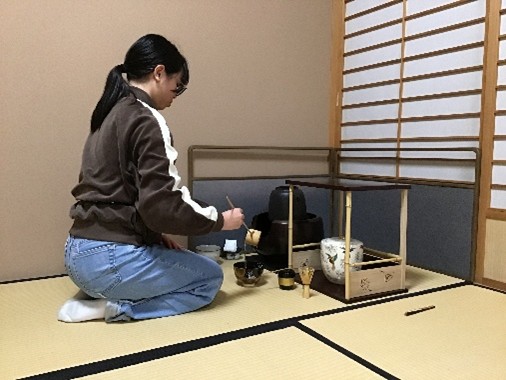10月15日と16日の2日間、茶道部でお月見のお茶会を行いました。お軸は本校の書道の教員が書いたもので、季節の植物であるススキや、ウサギのお茶碗など季節感を意識したお道具を生徒が選びました。普段はそれぞれ、主に自分がお点前をする(お茶を点てる)練習をしている部員ですが、このお茶会に向けて亭主の補佐をする半東の役割や、お菓子などを準備する水屋、お菓子や茶器をお客さんへ運ぶお運び、そして茶会に招かれたお客さんの作法を学ぶ機会となりました。学年が上がるごとに茶道への理解が深まり、できることが増えていきます。それぞれに上手くいかない部分もありましたが、次のクリスマスお茶会、そして学校祭へと生きる良い経験になりました。
