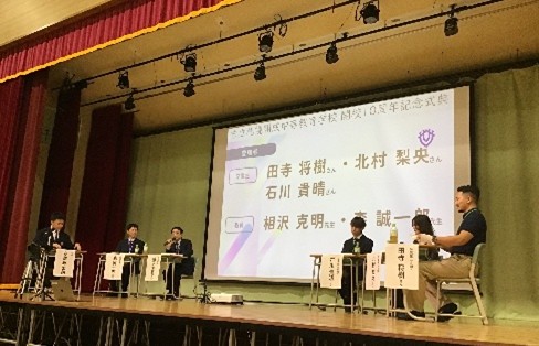 11月22日(土)、本校の10周年記念行事として、午前中はIDUと講演、午後は記念式典が行われました。記念式典は、校歌の一節「歴史の教えたずねつつ、明日をいかに生くべきか」をテーマに、過去10年を振り返るだけでなく、ひとりひとりがこれからの開成や自分の人生を考えられるような式典にしたいという願いを込めて、企画から運営まで生徒が主体となって創り上げました。当日は、初代校長相沢克明先生や卒業生を招いた座談会、校舎建設の貴重な映像などから開成の歴史と想いを深く知り、続く絵馬企画では、全校生徒が未来への決意を形にしました。生徒一人ひとりが開成の歴史と未来の担い手であることを自覚し、「これまで」のバトンを受け取って「これから」へとつなぐ、温かくも力強い一歩を踏み出した一日となりました。