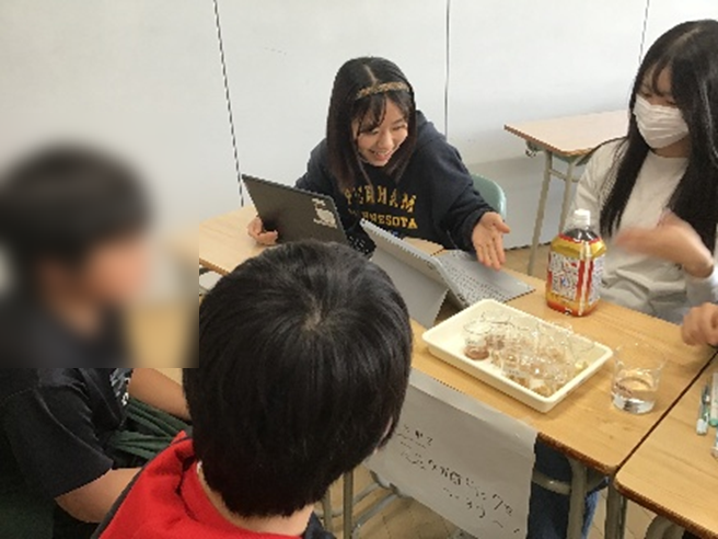 今年は本校の発表研究数が107テーマ、来校する小学生は 約200名と、2階フロアを貸し切ってのイベントで大いに盛り上がっておりました。生徒たちは、自分たちが探究してきた内容を小学生にもわかりやすく伝えられるよう、工夫を凝らしながら発表していました。中には実演やデモンストレーションを交えて紹介するグループもあり、児童たちは興味津々。学校・学年を越えた良い交流の場となりました。