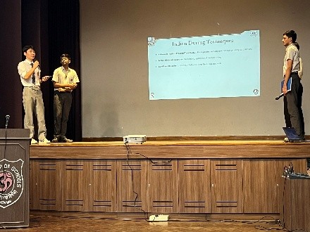 SSH国際共同研究インド訪問プログラムに立命館慶祥、札幌旭丘、札幌東高校とともに本校から参加してきました。インドのチェンナイを中心にpallikaranai校と交流したり、インド数学を学んだり、インド工科大学マドラス校で物理学のレクチャーを受けるなど学びの研修があり、最後には共同研究の成果発表会も設けられました。その他、ポンディチェリの世界遺産建築群を訪れたり、朝4時からのヨガ体験、火をたく儀式など、インド文化に触れることもできた充実したプログラムでした。参加者の澤村さんは「この体験は、自分の人生を変えたと言っても言いすぎではないと思う。特に食べ物や交通などが日本とは大いに違ったが、こちらの国はそれでうまくいっているんだという発見もあった。地域社会の構造や文化的背景などを多角的に理解する機会になったし、現地での共同研究は、社会課題に対するインド側の分析視点に触れ、比較文化的な思考を深めることもできた。お互いのコミュニケーションで使用する言語は母語ではない英語なので、議論までを英語で行うことで実践的な英会話能力は大幅に向上したと思う。加えてオンラインで培った関係性をリアルの場で発揮するというのも協働プロセスの質を高められたと思う。今回の経験は、国際的な課題に対して自律的に参画する姿勢を形成する上で極めて有意義だった」と語ってくれました。