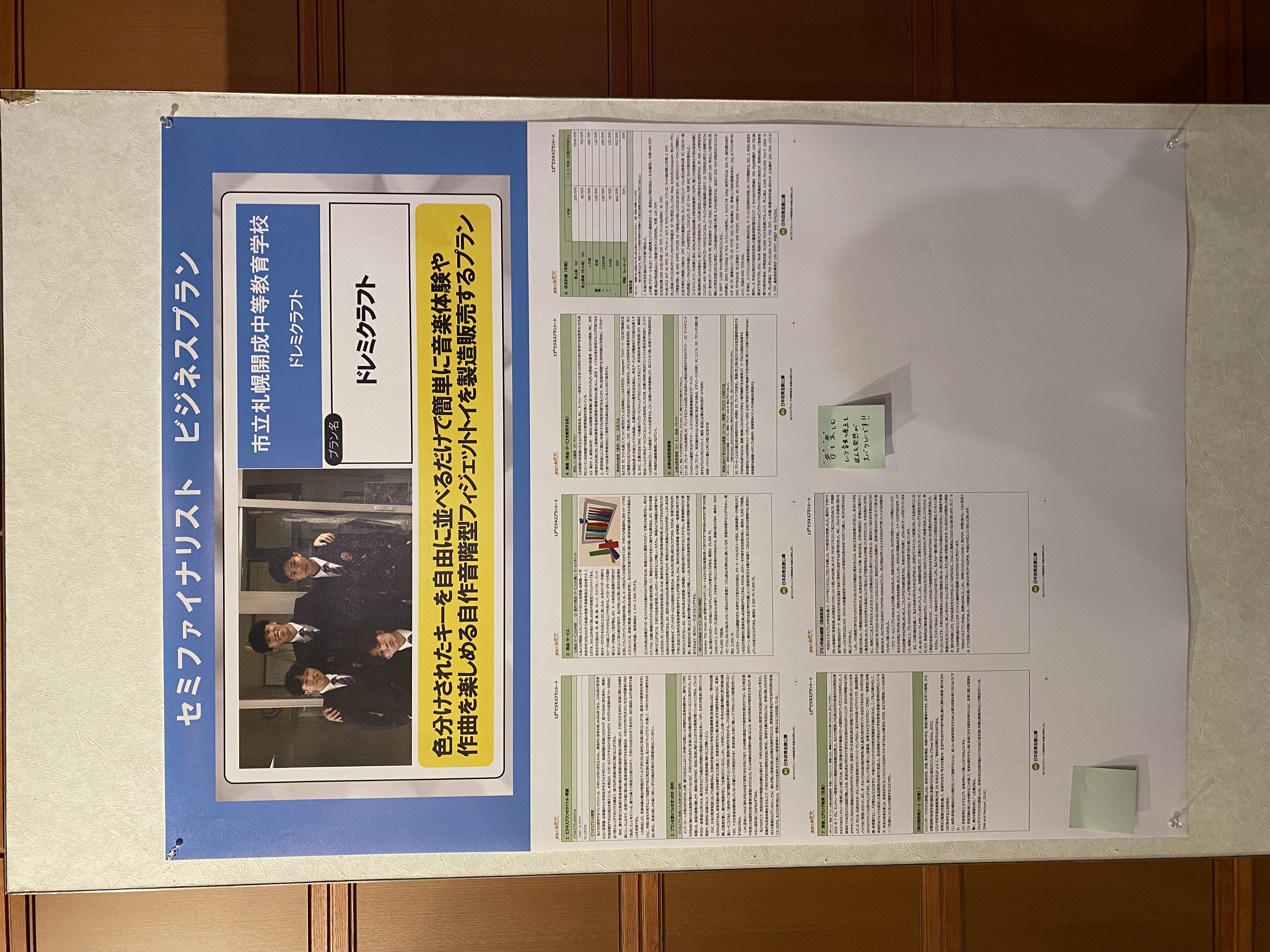 「ドレミクラフト」の提案したプランは、色分けされたキーを自由に並べるだけで簡単に音楽体験や作曲を楽しめる自作音階型フィジェットトイの製造販売プランだそうです。惜しくもファイナリスト10組には選ばれませんでしたが、東京都での最終審査会へ招待されて参加してきました。ファイナリストの発表などを聞き、次への課題を発見できたよい経験になったということでした。