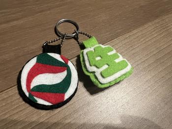 今大会に向けて、マネージャーが選手と監督、コーチに手作りのお守り(キーホルダー)を作ってくれました。