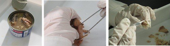鯖の水煮缶を使って、鯖の断面の隔膜模様を観察し、パイロンみたいな筋円錐を取り出せないものかと試してみました。