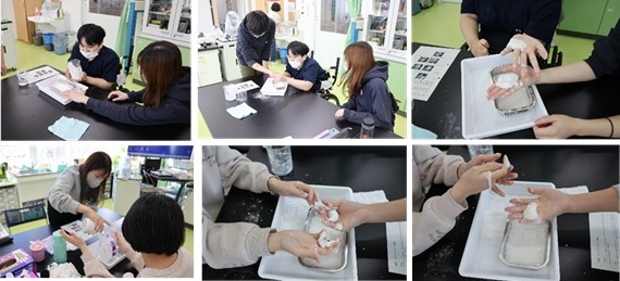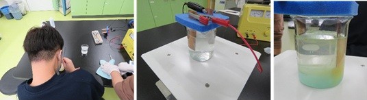 片栗粉に水を加えて、かたまりを握ったり、掌に広げたりしてみました。最後にヨウ素デンプン反応もしてみました。