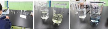 濃塩酸を希釈して、また、水酸化ナトリウムを水に溶かして、それぞれ決められたモル濃度の溶液を作りました。