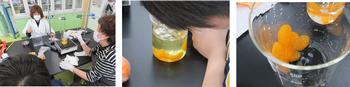 冷凍ミカンを解凍して塩酸と水酸化ナトリウムで薄皮を溶かしてみました。