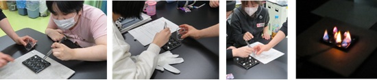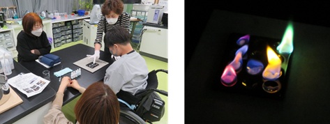 理科室を暗幕で真っ暗にした中で炎色反応をやりました。