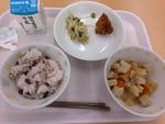 給食時間の楽しかった記憶を思い出しながら、小学部みんなで給食を食べました。